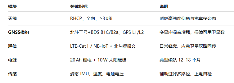 終端采用寬溫電芯與石墨導(dǎo)熱片;太陽能板選低照度效率高的晶硅。